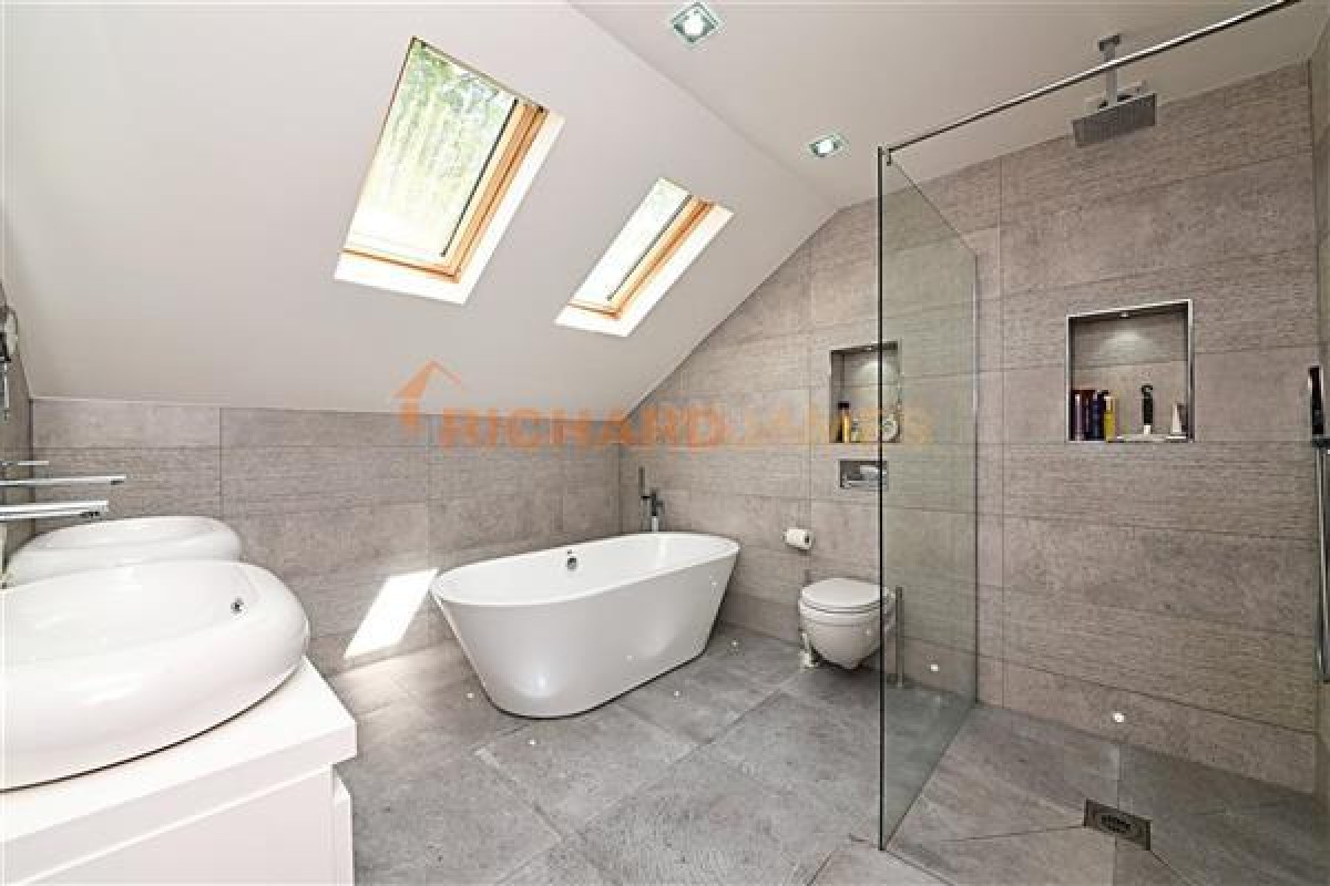 A unique detached chalet bungalow, with a stunning double volume entrance Hall, securely set behind electric gates in one of Mill Hill's most sought after locations, yet discretely nestled away from view.