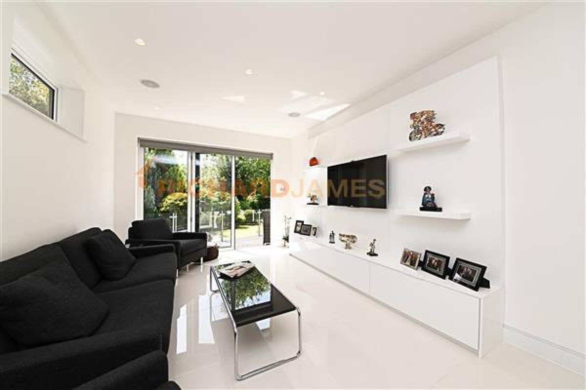 The landscaped garden, which extends to approximately 123ft, is south facing with a full irrigation system and a large terrace with electric awnings.