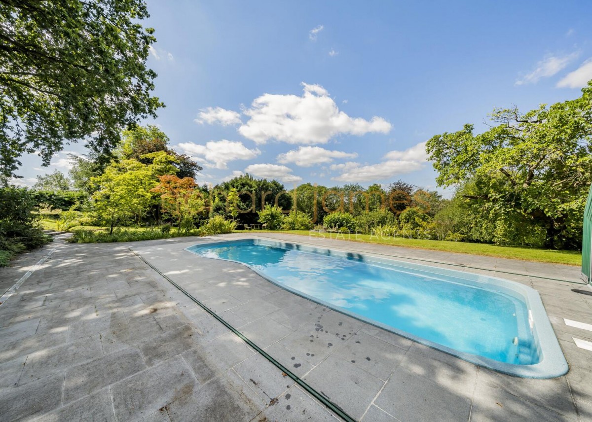 Set in generous grounds of approximately 1.75 acres features include landscaped Garden with Treehouse, Tennis Court, Swimming Pool with retractable cover, Orchard and ample off street parking complete with EV charging point set behind electric Gates.