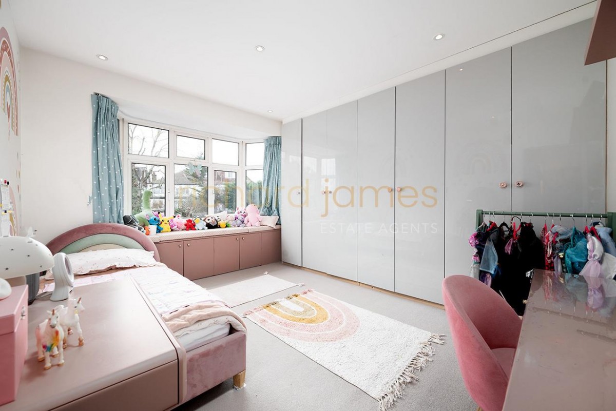 A beautifully presented five-bedroom, three-bathroom (two en suite), 2,494 sq ft / 231.7 sq m semi-detached family home set on one of Mill Hill’s most sought-after leafy turnings, just moments from The Broadway.