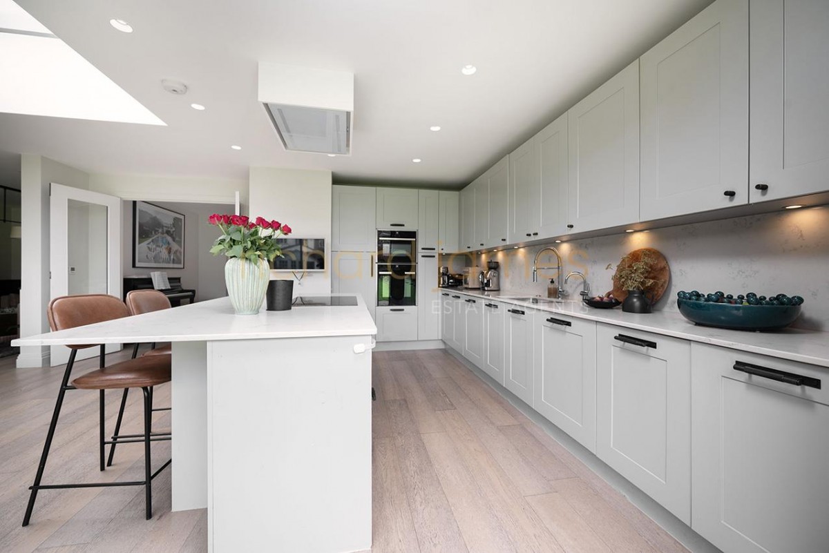 Having been skilfully extended and refurbished in recent years, the house offers versatile ground-floor living spaces, including a stunning kitchen/living/dining room with floor-to-ceiling doors opening onto the garden, a TV/family room, a study, a utility room, and a guest WC.