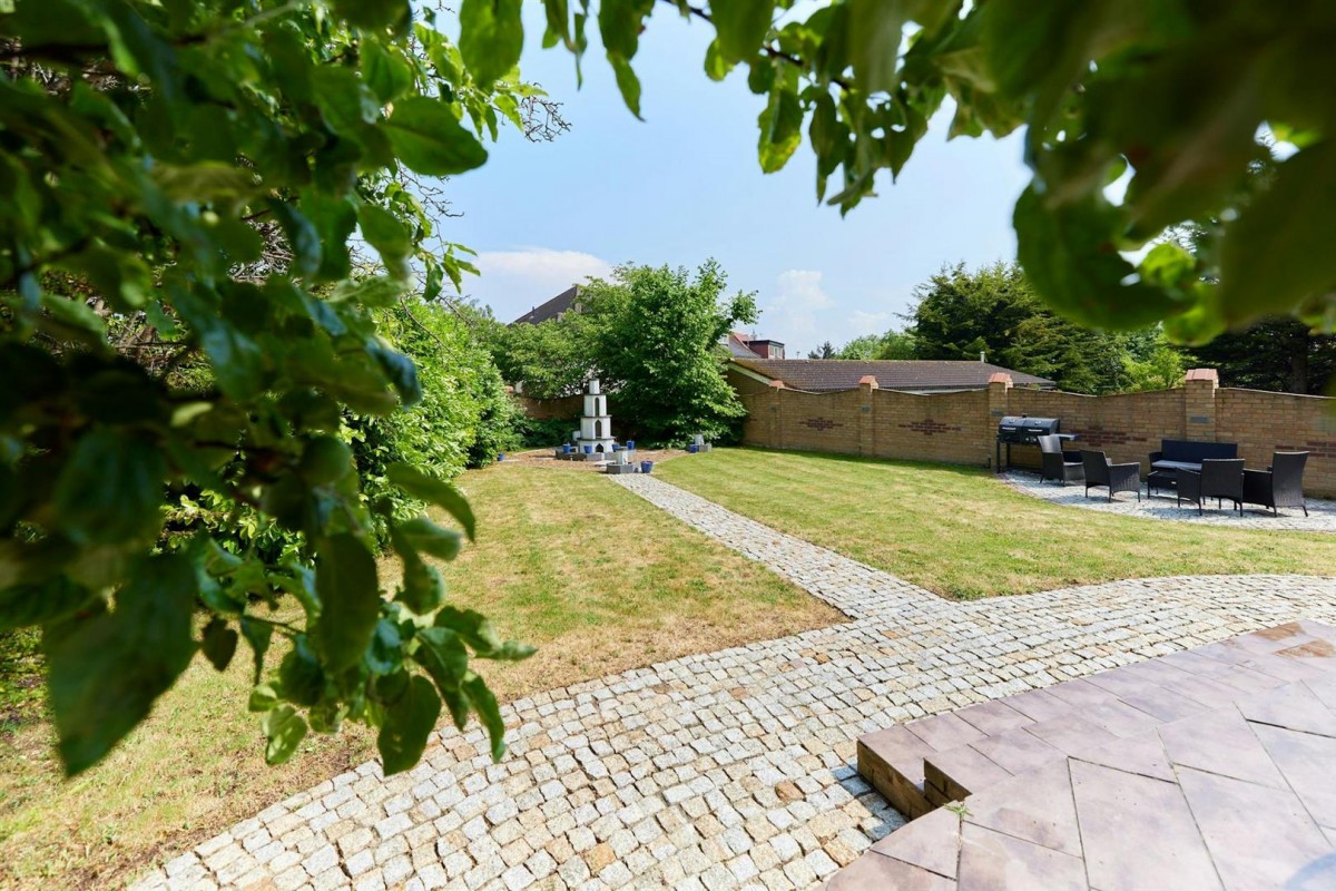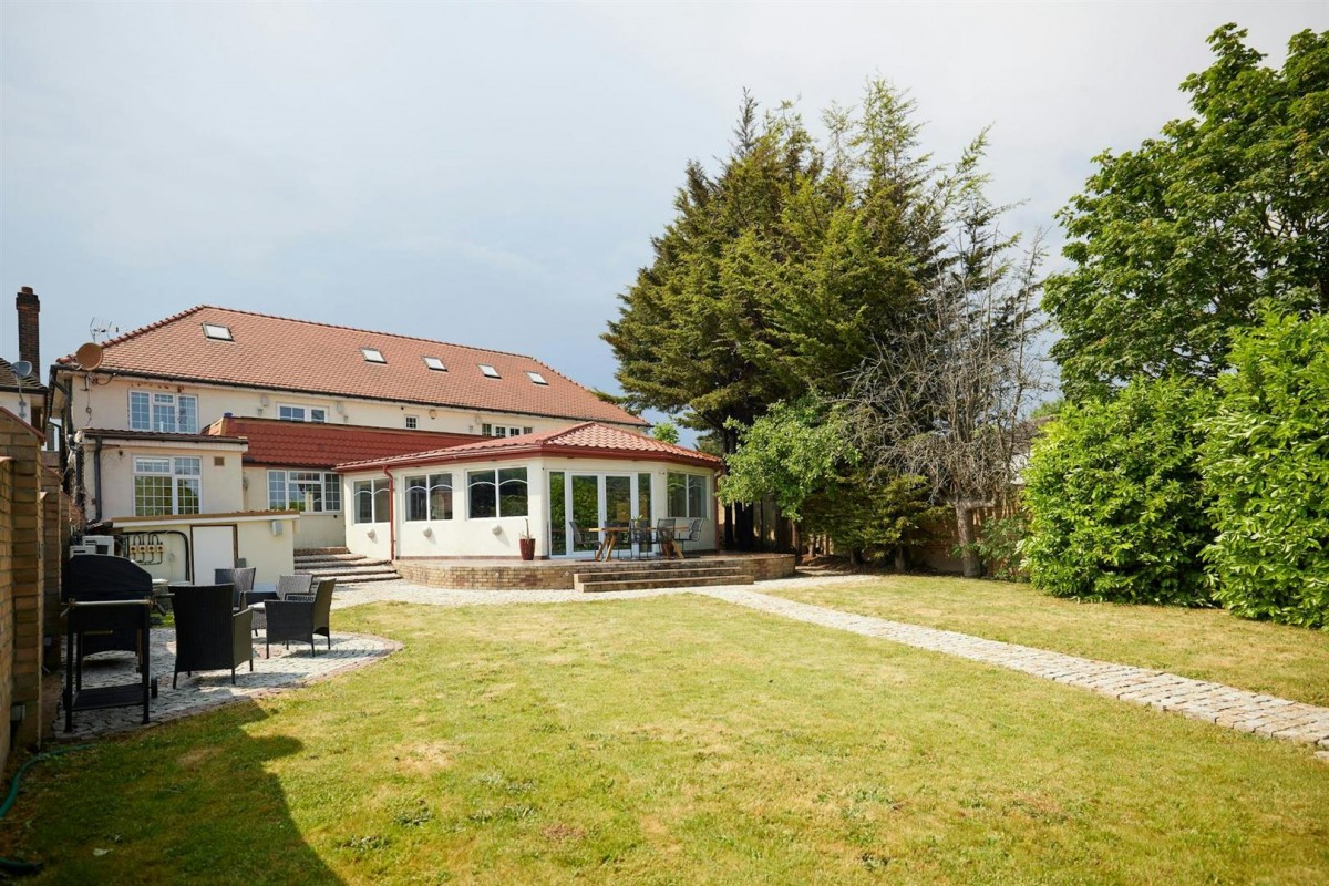 Offered for sale with no upper chain is this large double fronted detached family house securely set behind electric gates set back from the road behind a carriage driveway and located on one of Mill Hill's most sought after turnings.