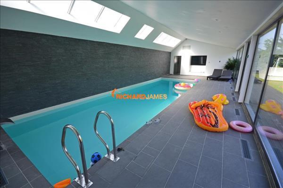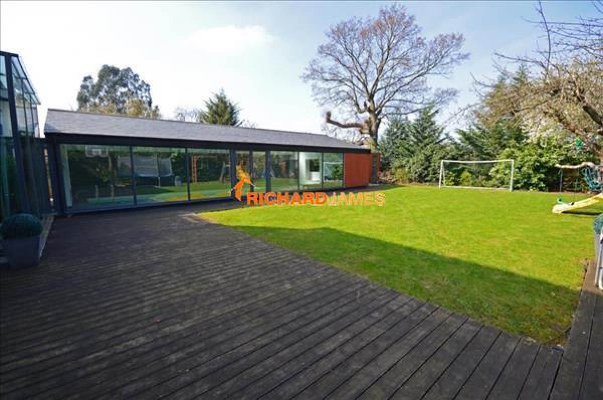 The house features a breathtaking triple height vaulted entrance hall, indoor swimming pool complex, underfloor heating, air conditioned rooms, integral garaging, two utility rooms and west facing garden backing onto Mill Hill Park giving exceptional views from 1st and 2nd floor.