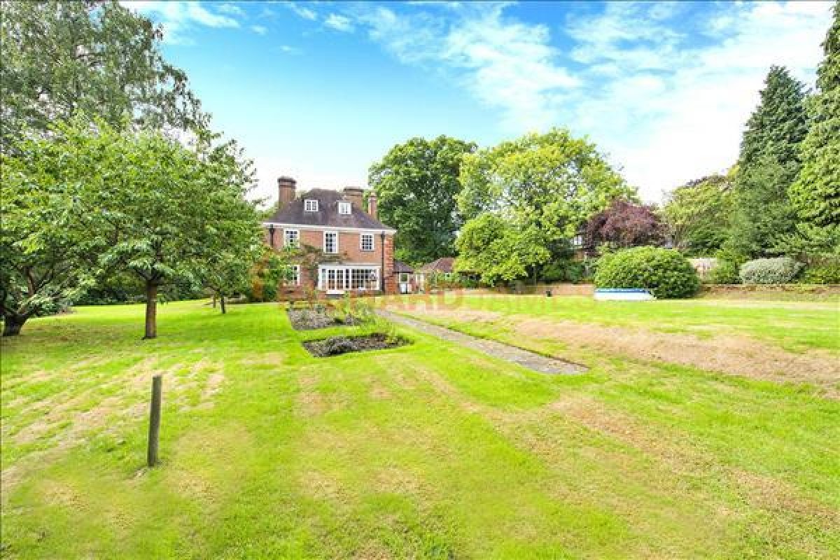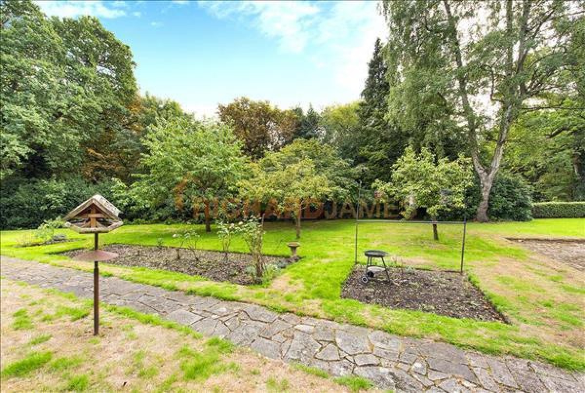 The front of the house has an attractive front garden, a large driveway providing parking for multiple cars and a double garage. To the rear of the property is a beautiful garden (extending to approximately 220'/68m) surrounded by mature trees giving it the feeling of privacy and patio area great for entertaining.
